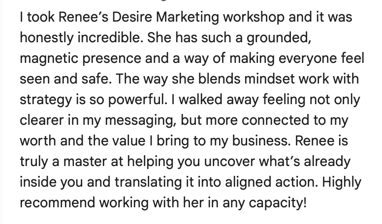 No! Whether you're a seasoned entrepreneur, in the early stages of building your business, or just starting to dream about working for yourself, this course was specially designed to meet you where you're at, and expand you from there. This work is foundational. It allows you to clear the subconscious blocks that hold so many women back before they ever sign their first client. And if you're already in business, you'll finally understand why the strategies you've tried may not be landing the way you want — and how to shift into alignment that actually works.